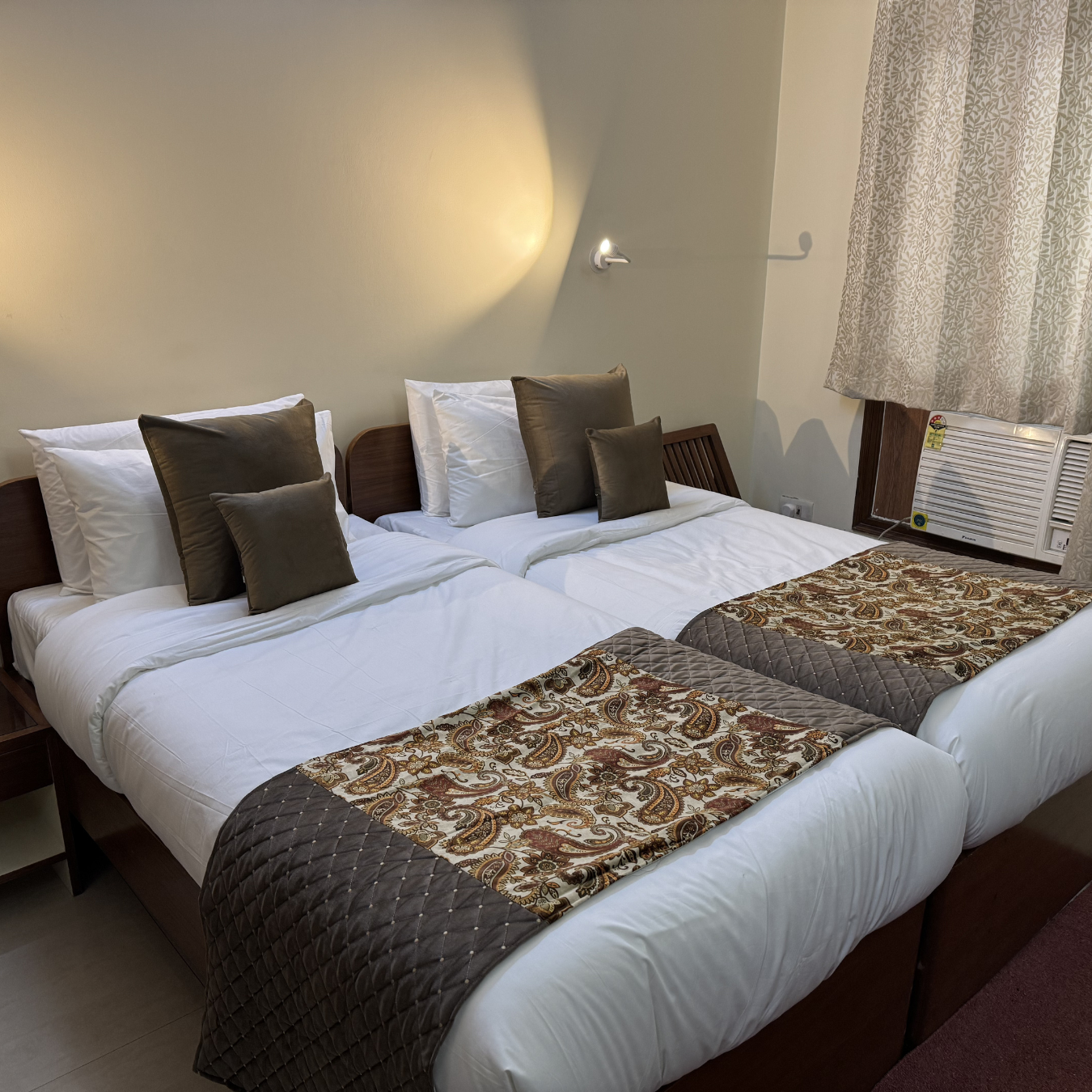 Stay in a cozy shared balcony room with a twin bed. Enjoy live meals—breakfast (8–10:30 AM), lunch (1–3 PM), snacks (6–8 PM), and dinner (8:30–10:30 PM)—served in-room or in the dining area. Meals beyond these hours are available on request (non-live). High-speed Wi-Fi up to 120 Mbps and paid laundry service are available. Located in Noida Sector 55, close to major offices and just 4.3 km from Fortis Hospital. Ideal for business travelers or short stays with comfort and convenience, with the nearest Metro Station of Sector-62